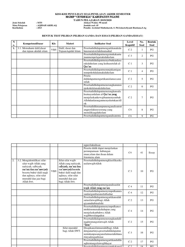 Penyusunan dan materi soal pas akidah akhlak untuk mi.